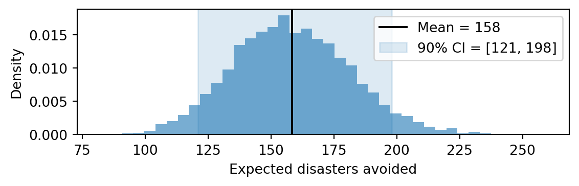 One important caution: never assign zero prior probability to a value unless you are certain it is impossible. If the prior density is exactly zero in some region, no amount of data can move the posterior there. The model is thus structurally unable to recover those values. If you merely think a value is unlikely, assign it a small but nonzero prior probability. For example, if you believe disaster rates above 20 are extremely unlikely but not physically impossible, use a prior whose tail extends beyond 20 (even if the mass there is tiny), rather than a prior that truncates at 20. Reserve hard constraints for genuine impossibilities, like negative rates.