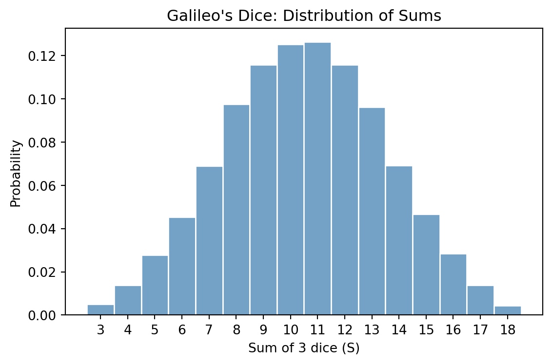 Each outcome is weighted by its probability. This is exactly what averaging over many samples approximates. In the die example, \(\Omega = \{1, \ldots, 6\}\) with uniform distribution \(p\), and \(t\) is the identity function \(t(\omega) := \omega\).